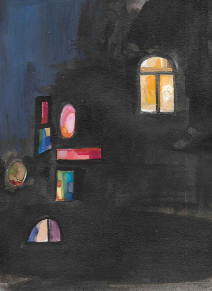 Op zekere dag ontdekte ik dat er hier toch nog een verhaal mogelijk was. Op de eerste verdieping aan de overkant in een keukenraam ontspon het zich traag voor mijn ogen. Het verdrongen verhaal in de bladzijde van een raam kwam naar de voorgrond.
